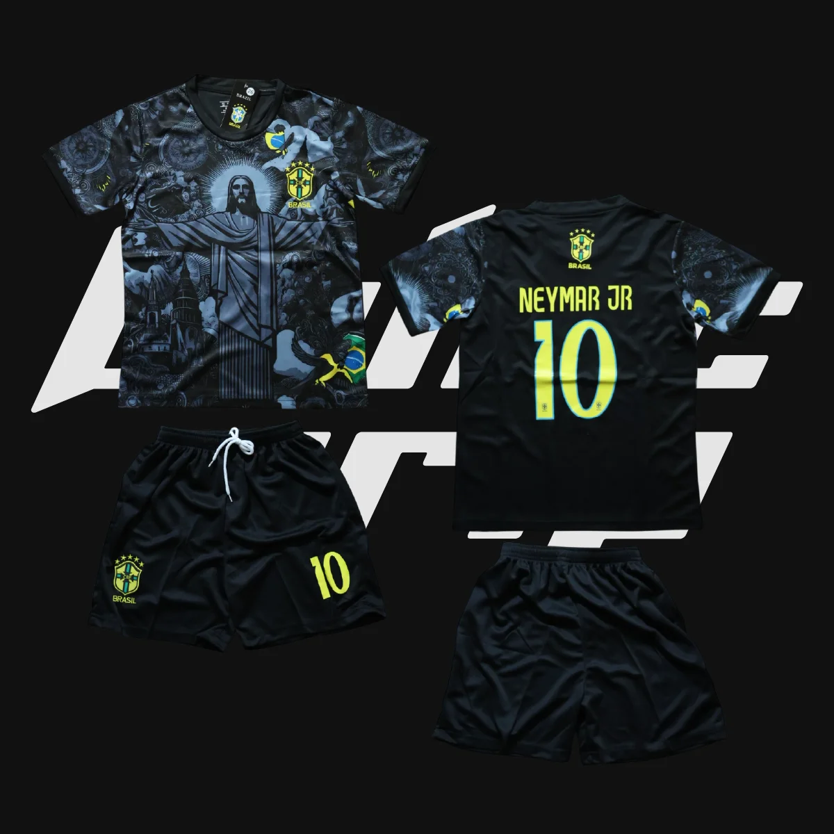 Aukštos kokybės futbolo apranga vaikams su Neymar vardu, 10 numeriu ir Christ The Redeemer dizainu. Puikiai tinka treniruotėms ir aktyviam laisvalaikiui.